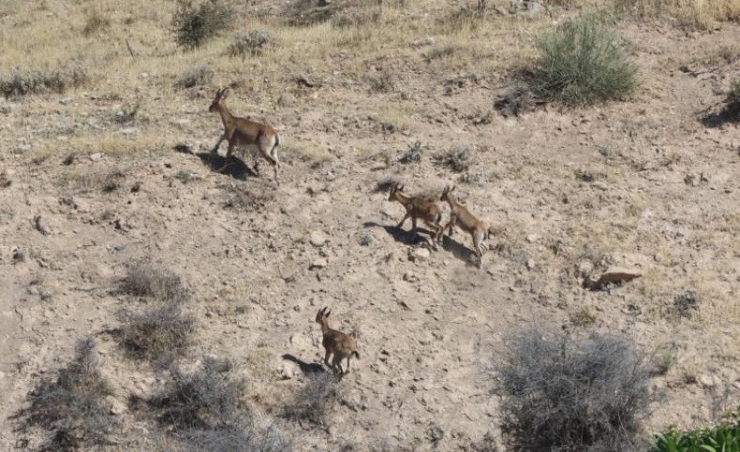 Adıyaman'ın Tut ilçesine bağlı Yalankoz Köyü yakınlarında sürü halinde gezen dağ keçileri görüntülendi.